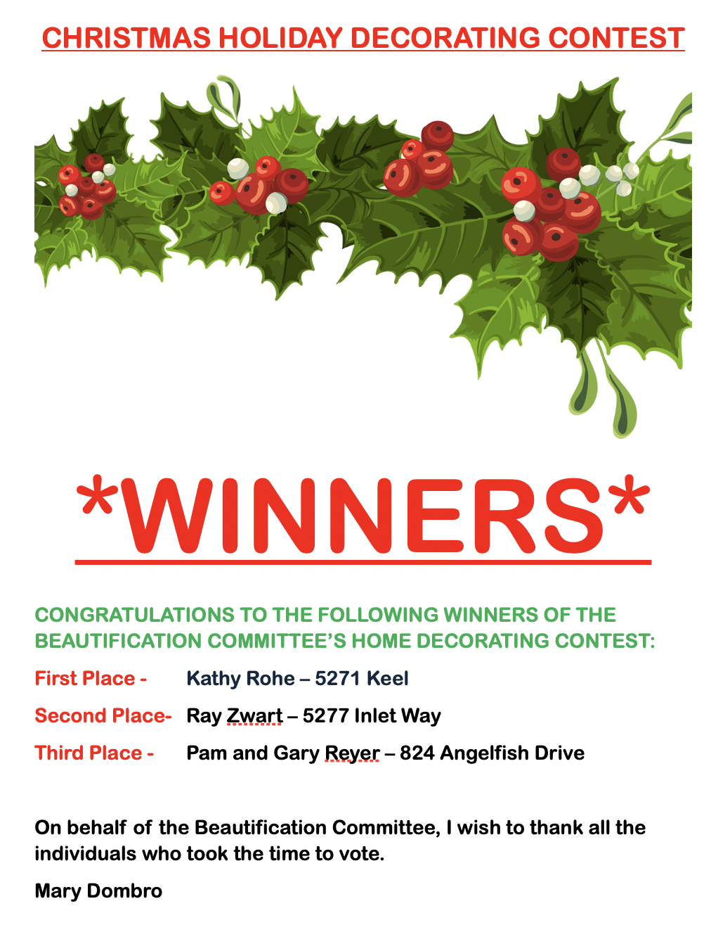 An Estoppel certificate may be obtained by contacting the office at 772-464-4803.