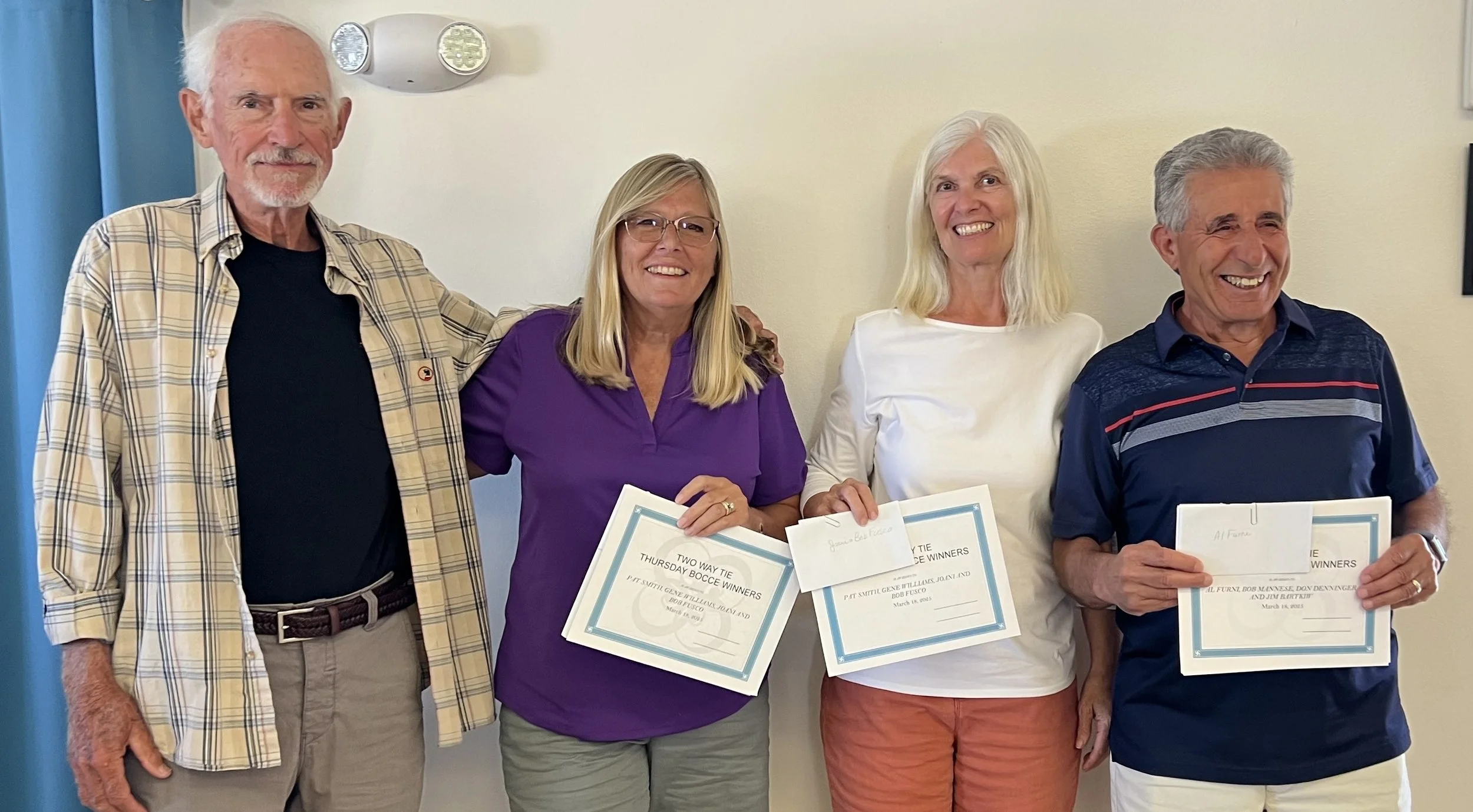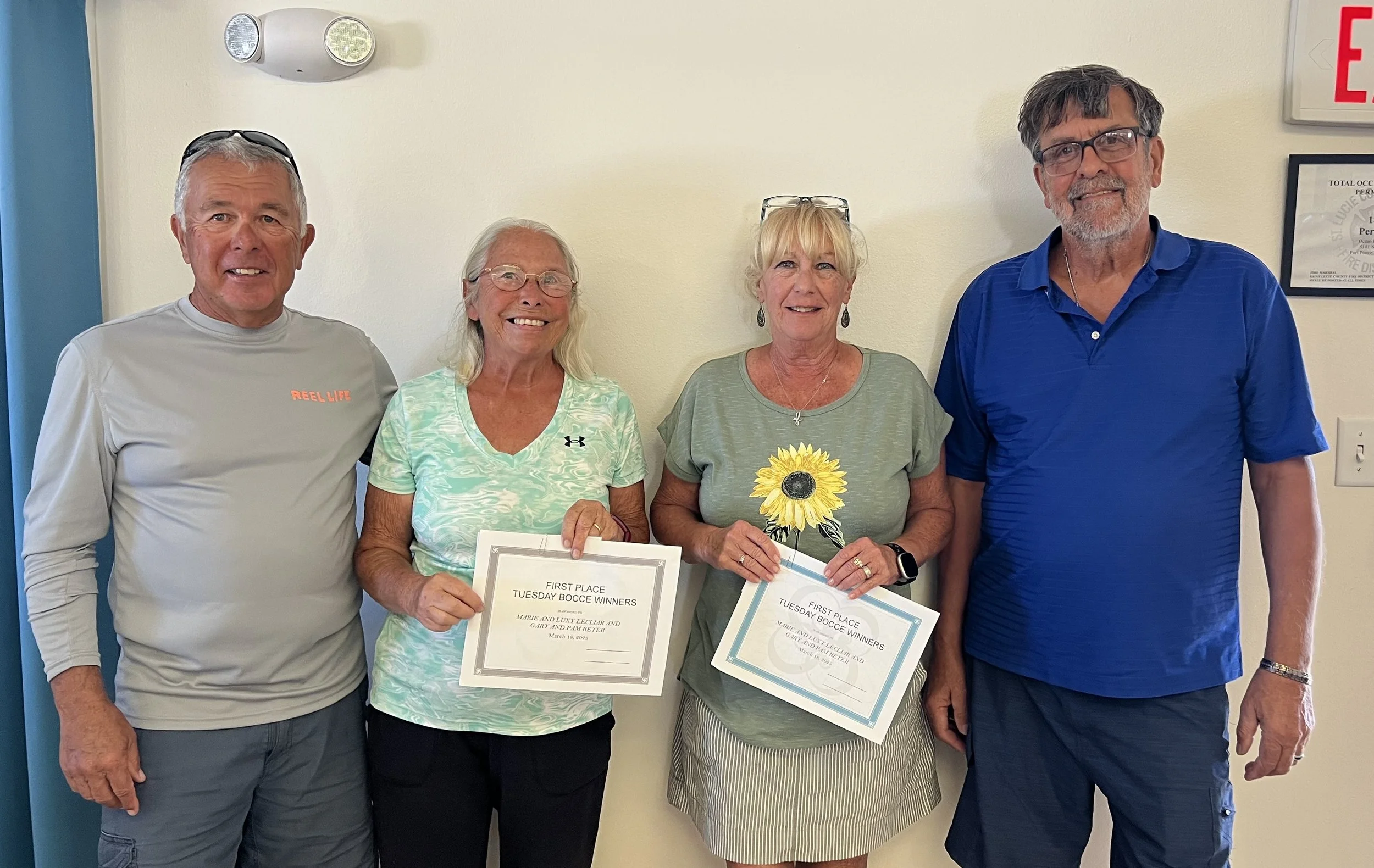 The mission of the Bocce Committee is to provide an organized, weekly activity for all residents of Ocean Resorts. Bocce is a nine-week activity that usually begins during the second week in January and ends around the middle of March, culminating in a pizza party at the end of the season. Sign up sheets are available in December and posted inside the Post Office.